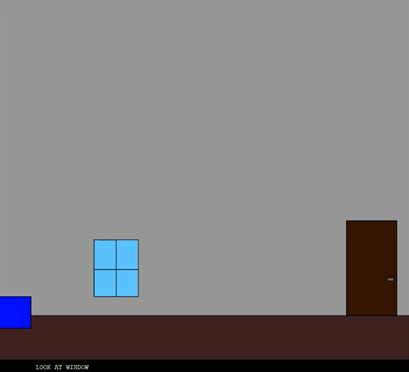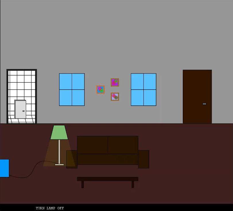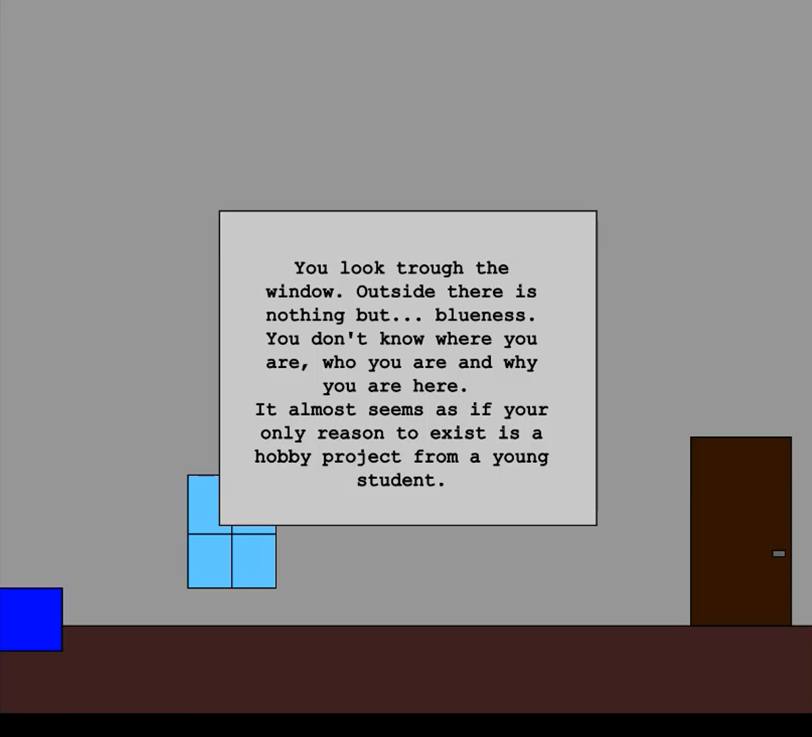 You are a blue square, trapped in a small apartment-like