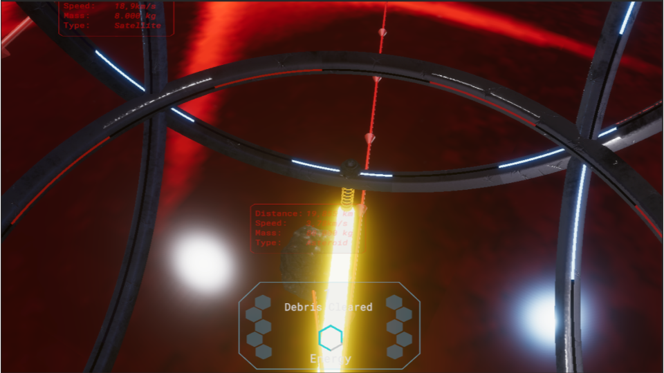This is a first playable prototype from our current game, made for university. It's a real-time strategy, shooter kind of game. It's set in space where the player is in charge of a space station. Their task is to protect the planet from space debrie by shooting it. With limited ressources the player needs to take into consideration which debrie to shoot in order to restore different ressources.